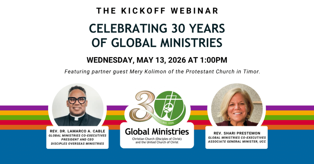 For three decades, Global Ministries has been a shared witness of the Christian Church (Disciples of Christ) and the United Church of Christ, partnering with communities around the world to live out the Good News of Jesus Christ. Together with local and international partners, we work for justice, foster reconciliation, and empower communities to thrive.