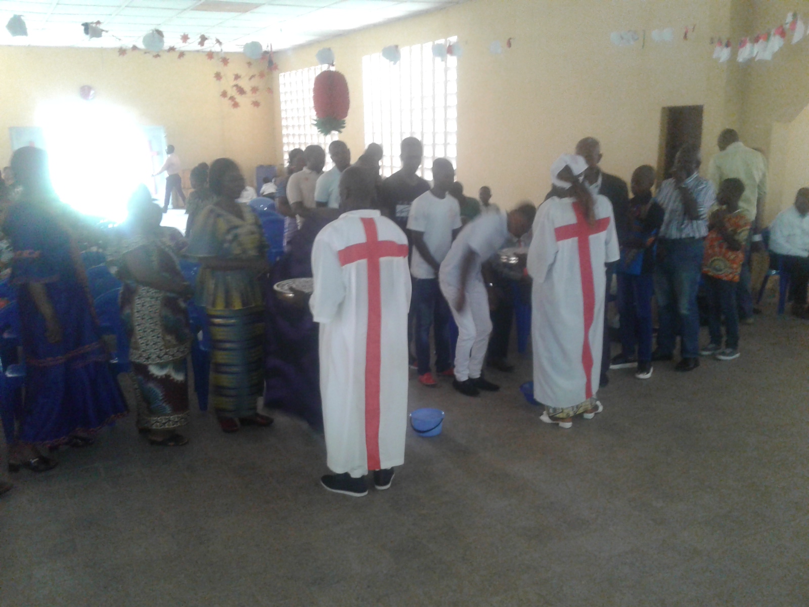 To begin with, hand washing stands were placed outside each church in Mbandaka. When the time for communion came, the elders prayed over the emblems as usual and then brought them down in front of the pulpit. The ushers dismissed each pew to proceed to the front of the church to wash their hands again and receive an application of hand sanitizer. Then they could partake of the bread and the cup, depositing the empty cup into a bucket, and returning to their pew. The process was smooth and was in no way disruptive to the overall worship experience.