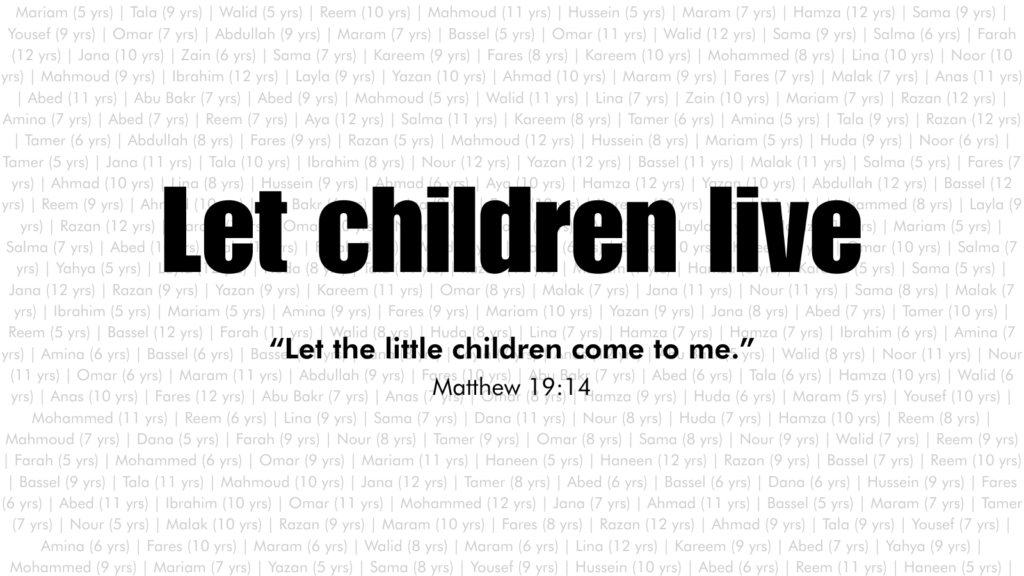 - Register for the Let Children Live campaign and receive the first name of a Palestinian child to lift up and pray for.